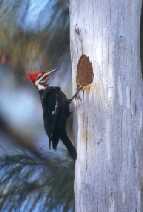 The Pileated is the only black woodpecker in North America today, after the Ivory-billed Woodpecker of which the last specimen was seen around 1969 was considered to be extinct. If you compare the Pileated woodpecker with our European black woodpecker, it is not difficult to see that they had the same ancestors. Perhaps they were one species during the days when the continents of America and Europe were still connected through a land passage and that this species split and developed into two separate subtypes after the two continents drifted apart and an exchange was not able to take place any more.