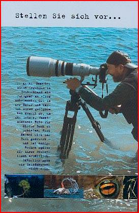 2. Für die SLR-Besitzer, die sogenannten ernsthaften Fotoamateure mit Naturinteresse, waren zu jedem Bild die technischen Daten aufgeführt, und zwar ganz ausführlich. Denn es ist ja bekannt, daß jeder Amateur immer wissen will, womit ein Foto gemacht worden ist.