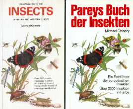Above, for example, a pair of books from the great number of field guides about flora and fauna. On the left the original English copy of a field guide on Insects of Central Europe and to the right the German translation. This can be easily used to help find the English names, since the Latin names are identical in both books.