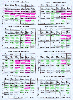 Tabelle 1: 4.0/500 mm, Querformat