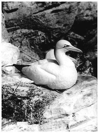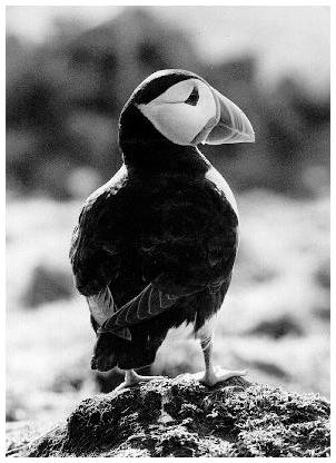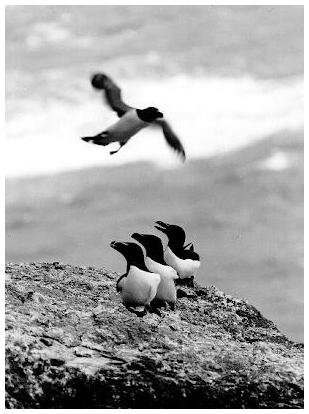 Fester Ansitz in einer Papageitaucherkolonie auf Skomer Island * 1957, Fair Isle,