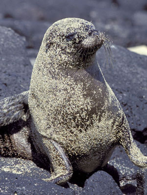 Landungssteg treffen wir drei Seelöwinnen mit eben geworfenen Jungen,