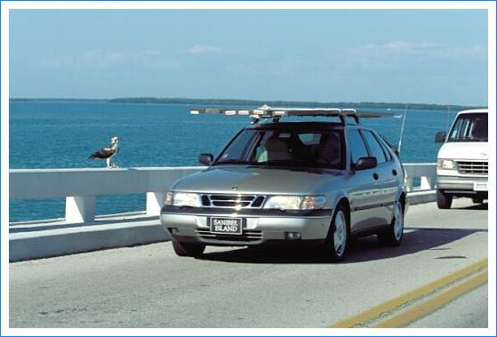 Das wollte ich natürlich fotografieren. Dazu mußte ich aber erst diese Brücke zuende fahren, dann auf dem Strandstreifen wenden, die Brücke wieder zurückfahren - am Adler vorbei - um dann auf der Insel wieder zu wenden und - jetzt mit schußbereiter Kamera - zum dritten Mal über die Brücke zu fahren, um den Adler mit den ganz nahe an ihm vorbeifahrenden Autos zu fotografieren.