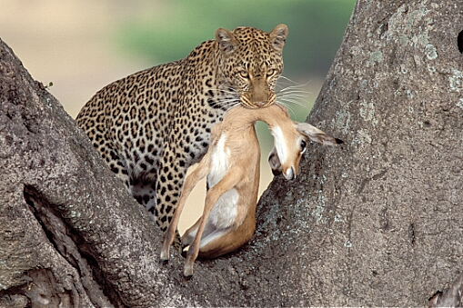 Im November 2002 traf ich die inzwischen 6 Jahre alte Zawadi nur einmal in der Nähe vom Kichwa Temba Busch, als sie ein junges Impala erbeutete, und in einem Baum vor Löwen und Hyänen in Sicherheit brachte.